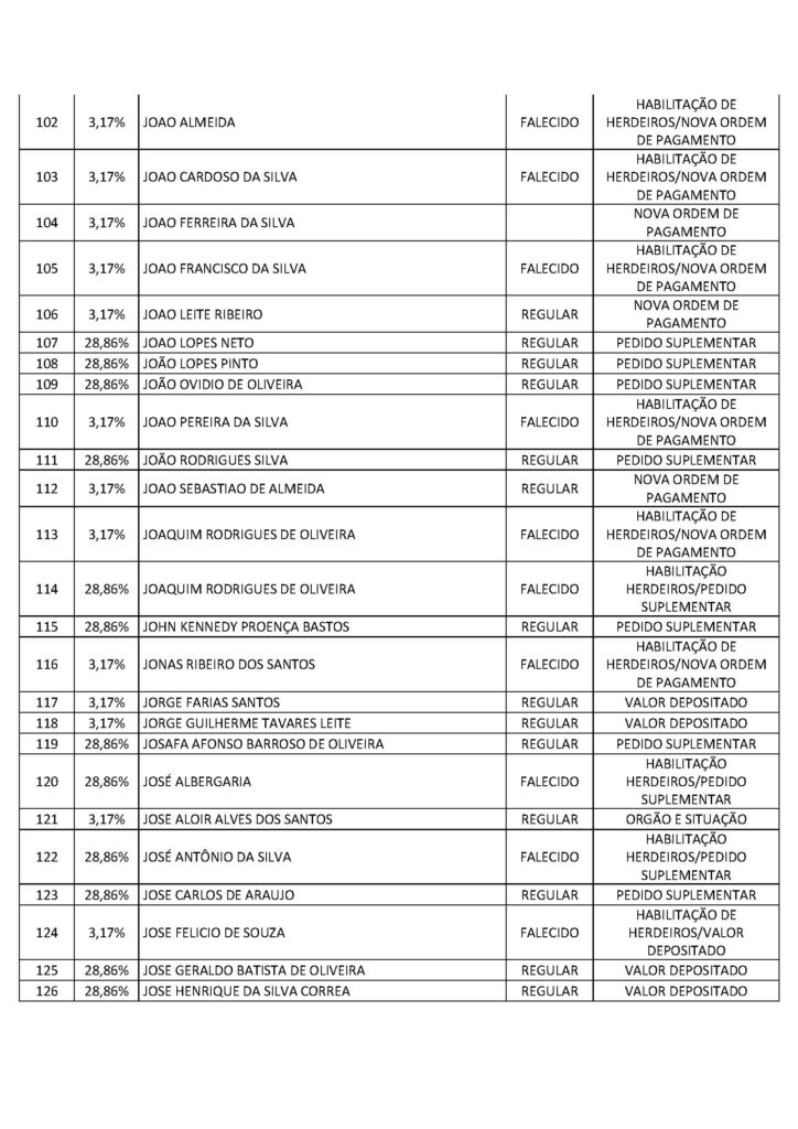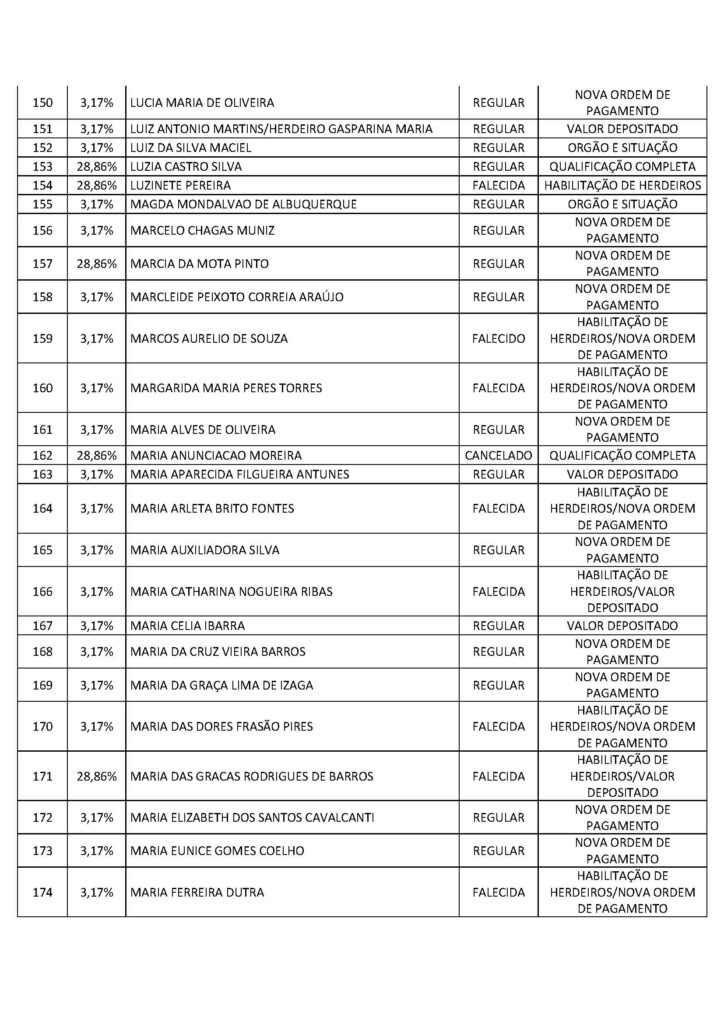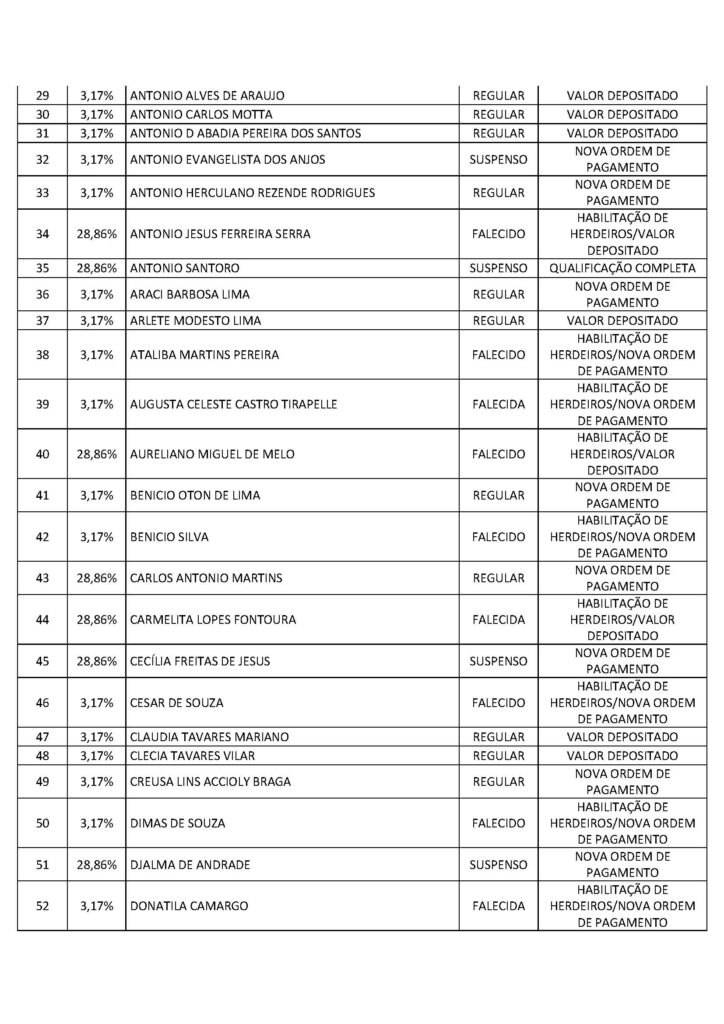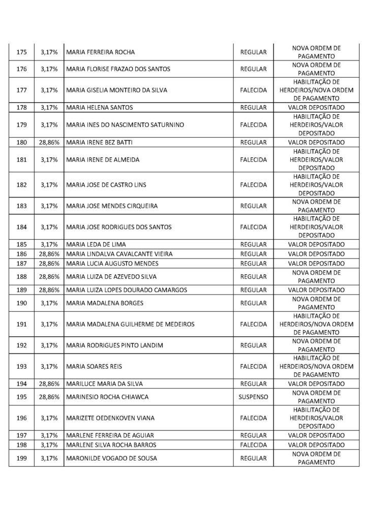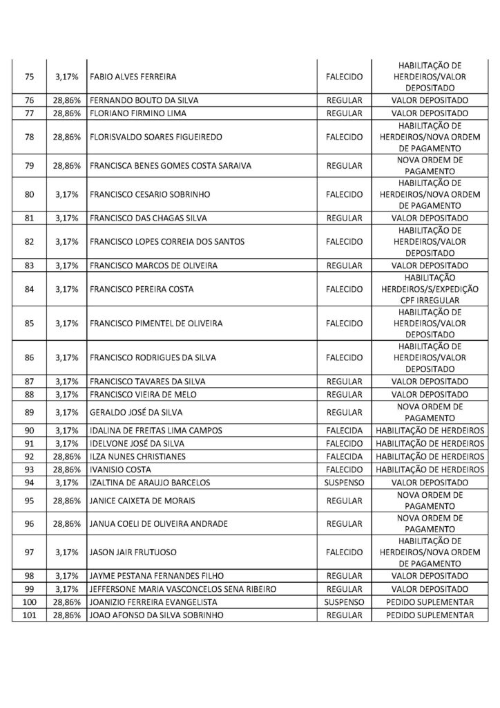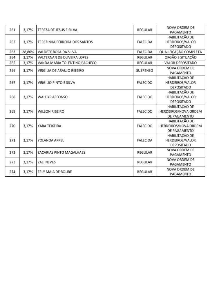 O Sindicato dos Trabalhadores em Saúde, Trabalho, Previdência e Assistência Social no Distrito Federal (Sindprev/DF), por intermédio de sua Assessoria Jurídica, conforme a Lei Geral de Proteção de Dados (LGPD) (Lei nº 13.709/2018), informa que os servidores listados a seguir, bem como os herdeiros dos falecidos, devem entrar em contato imediatamente com a Secretaria Jurídica do Sindprev/DF, pelo telefone (61) 3704-7200, para que lhes sejam fornecidas as informações e lhes sejam informados os procedimentos pertinentes a cada interessado específico.